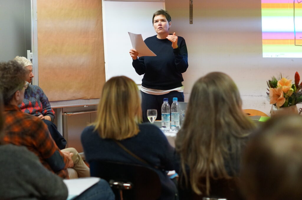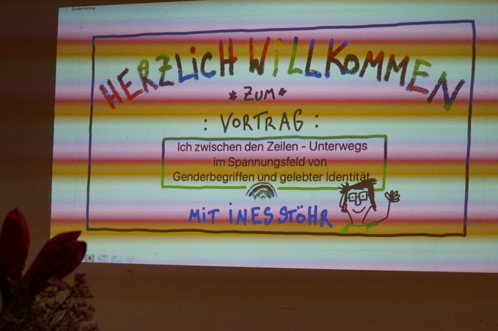 Dieser Schlusspunkt stellte eine sehr passende Überleitung her zu Ines Stöhr, die uns in einem zweiten Vortrag zum Thema: Ich zwischen den Zeilen – Unterwegs im Spannungsfeld von Genderbegriffen und gelebter Identität Einblicke in ihre Geschichte und Erfahrungen schilderte.